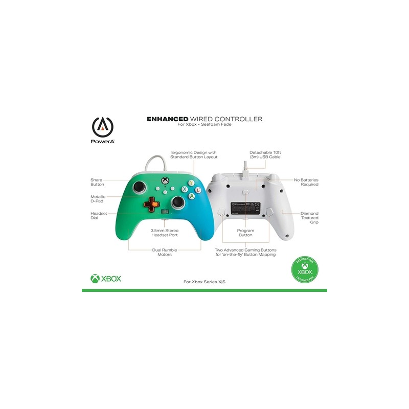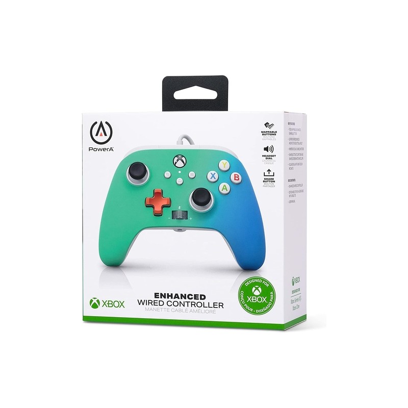 Este controlador con cable mejorado PowerA tiene licencia oficial para Xbox Series X | S o Xbox One con funciones adicionales para mejorar su experiencia de juego. Echa un vistazo al nuevo botón Compartir para capturas de pantalla del juego o videoclips, o ajusta rápidamente el volumen o silencia solo el canal de chat en tus auriculares estéreo con cable a través del dial de auriculares convenientemente ubicado. Obtenga una ventaja competitiva al mapear dos botones de juegos avanzados sobre la marcha, además de obtener todas las funciones que espera, como motores de vibración dual, diseño ergonómico estándar, conector para auriculares estéreo de 3.5 mm y palancas analógicas ajustadas con precisión con anillos antifricción para un movimiento más suave. Para el estilo y la comodidad, el D-Pad metálico y el agarre con textura de diamante hacen que este controlador se sienta realmente increíble. Nuestro controlador con cable con cable USB .