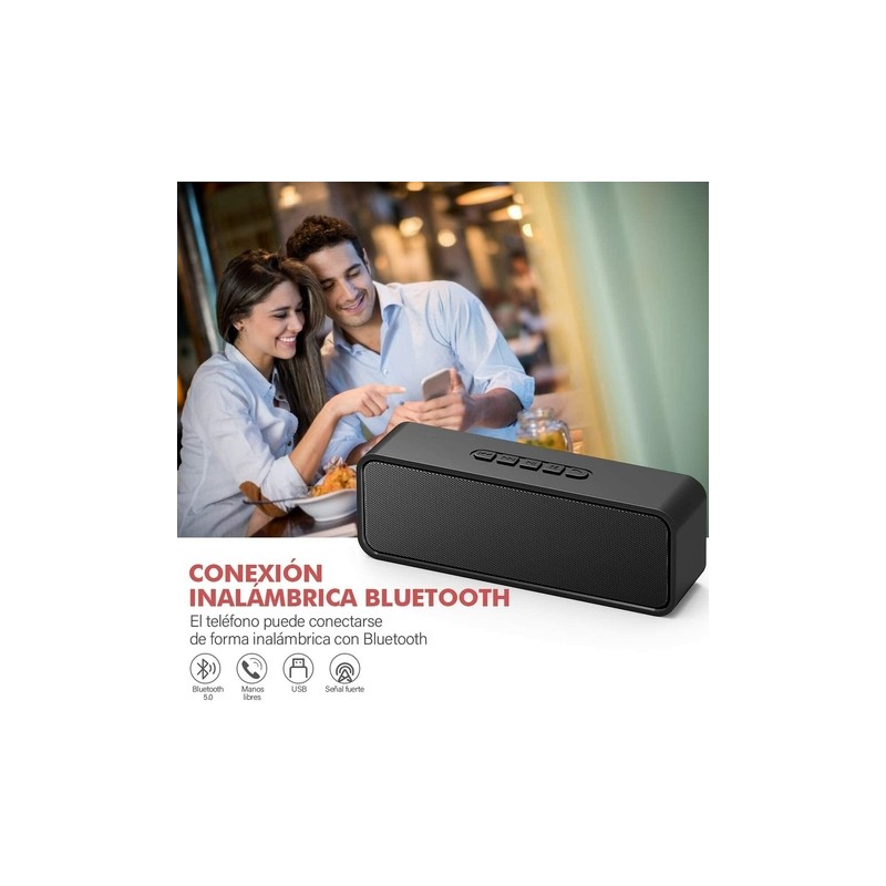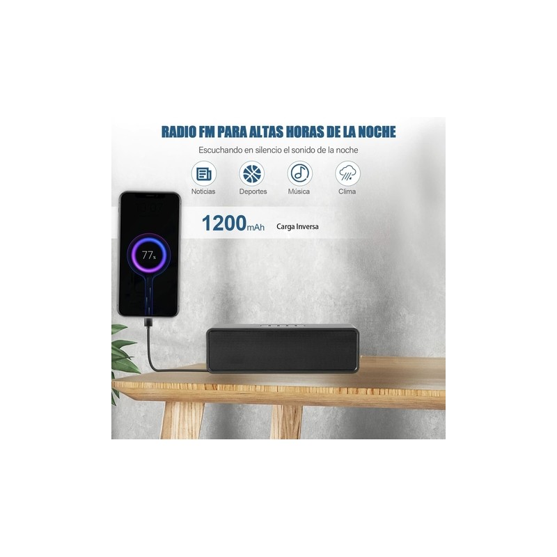 El teléfono se puede conectar directamente al altavoz.los altavoces Bluetooth proporcionarán un excelente estéreo y graves potentes a través de controladores de rango completo de 3W, y estarán equipados con un excelente diafragma de graves y una cavidad de altavoz separada. El diseño exclusivo del transductor proporciona un audio claro con menos del 1% de distorsión incluso al máximo volumen.