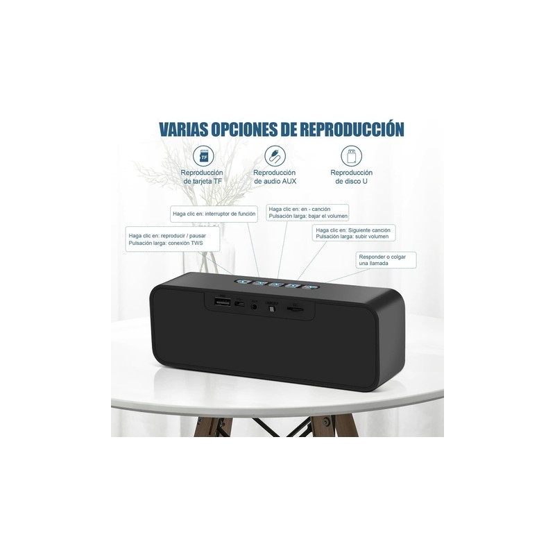 Bluetooth 5.0, Los altavoces bluetooth tienen un alcance de conexión de 10 metros.también admite reproducción de tarjeta USB y TF. Puede conectar su dispositivo a un dispositivo sin Bluetooth a través de un cable AUX para reproducir música o ver la televisión.
