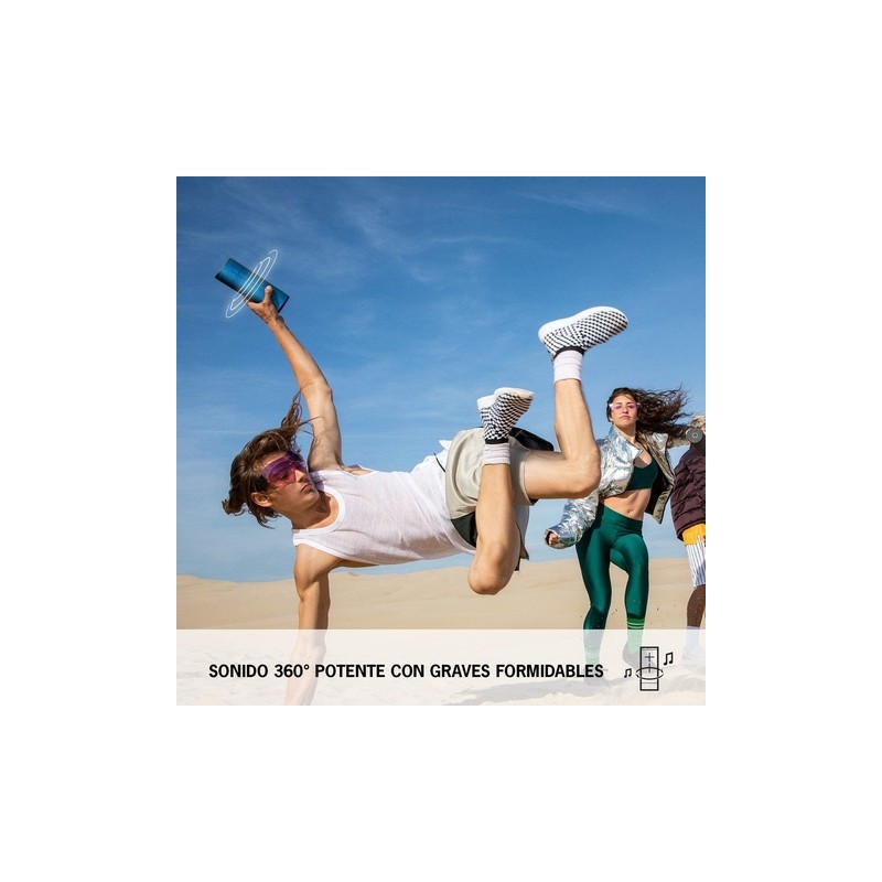 Su sonido envolvente de 360° con graves profundos y precisos, perfectamente equilibrados para distinguir cada nota de tu música.