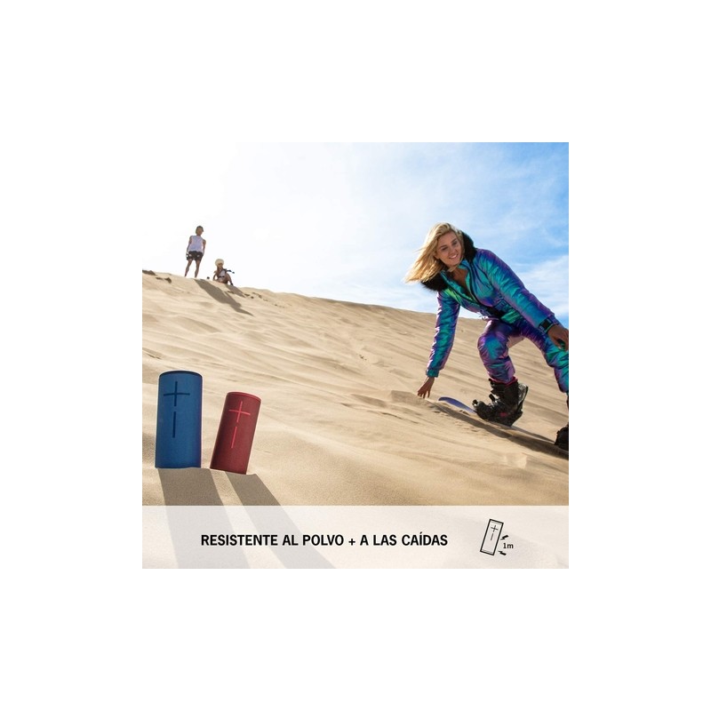 Su batería recargable la mantiene encendida y rockeando hasta por 15 horas seguidas. Agrega el dock de carga Power Up (vendido por separado) para cargar BOOM 3 de forma inalámbrica, para que esté siempre lista para acompañarte a la aventura.