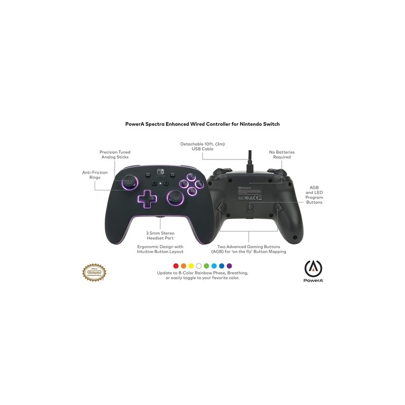 Ilumina tu juego con el controlador con cable mejorado PowerA Spectra para Nintendo Switch. Con licencia oficial de Nintendo, este súper divertido gamepad presenta 8 colores brillantes y efectos LED geniales, como "Breathing" o Rainbow Phase de 8 colores. Y, con un conector de audio estéreo de 3, 5 mm con silencio de chat con un solo toque y dos botones de juego asignables que puede programar sobre la marcha, llevará su destreza de juego a un nivel completamente nuevo y brillante.